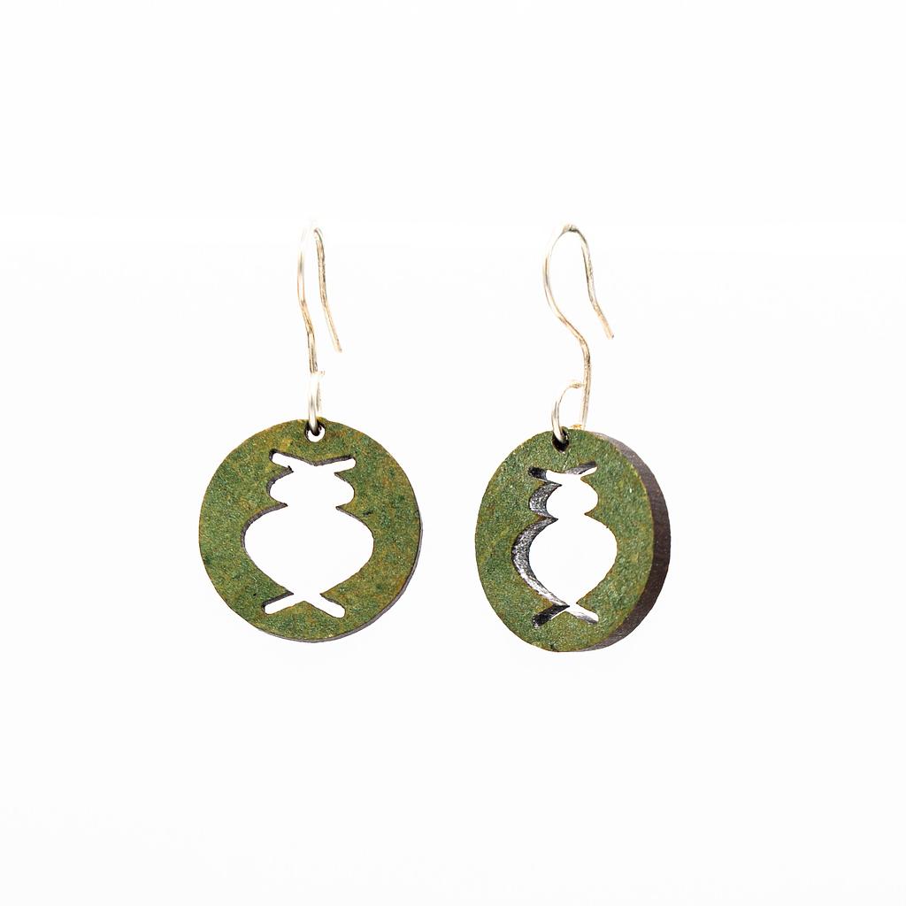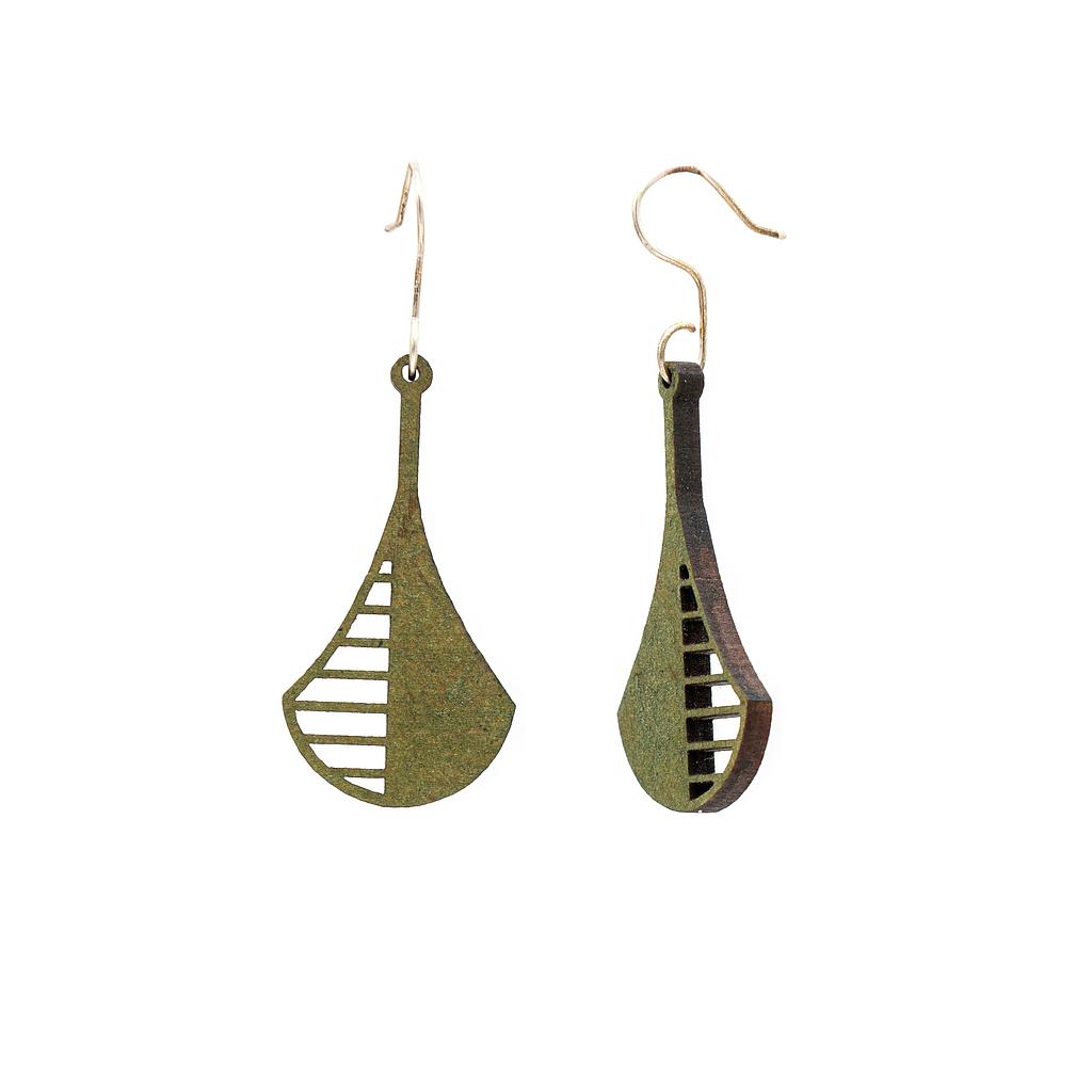 Concernant les boucles d'oreilles, comme nous utilisons à la fois des matériaux de récupération (dont les caractéristiques varient) et des teintures naturelles, chaque série réalisée possède une teinte unique, qui n’est pas toujours identique à celle des photos.
